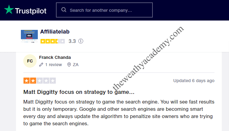 I also checked on Trustpilot if can get real Affiliate Lab reviews from Matt Diggity students.
